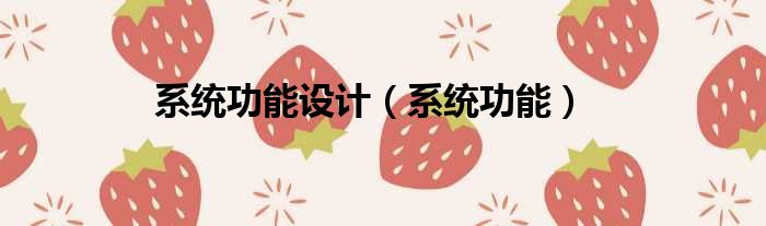 大家好,小东方来为大家解答以上的问题。系统功能设计,系统功能这个很多人还不知道,现在让我们一起来看看吧!