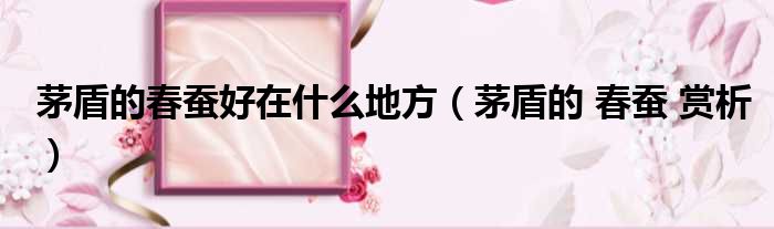 茅盾的春蚕好在什么地方(茅盾的 春蚕 赏析)