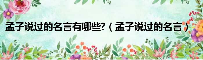 孟子说过的名言有哪些?(孟子说过的名言)