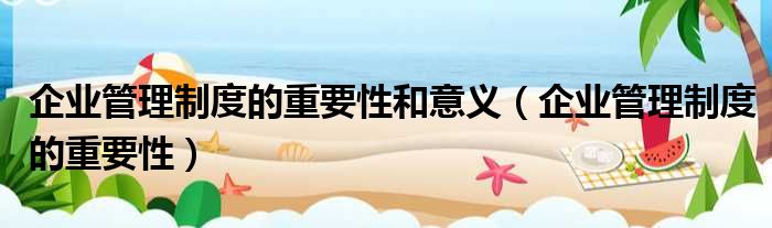 企业管理制度的重要性和意义(企业管理制度的重要性)