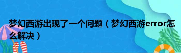 梦幻西游出现了一个问题(梦幻西游error怎么解决)
