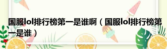 国服lol排行榜第一是谁啊(国服lol排行榜第一是谁)
