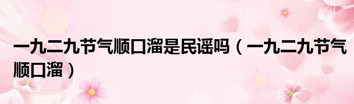 一九二九节气顺口溜是民谣吗(一九二九节气顺口溜)