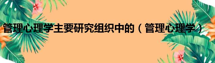 大家好,小东方来为大家解答以上的问题。管理心理学主要研究组织中的,管理心理学这个很多人还不知道,现在让我们一起来看看吧!