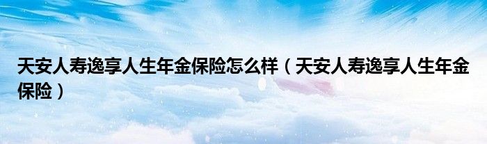 天安人寿逸享人生年金保险怎么样(天安人寿逸享人生年金保险)