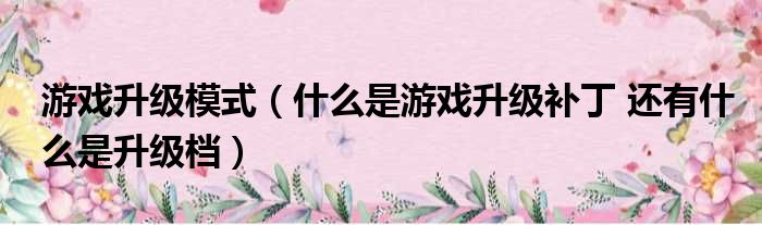 游戏升级模式(什么是游戏升级补丁 还有什么是升级档)