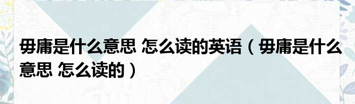 毋庸是什么意思 怎么读的英语(毋庸是什么意思 怎么读的)