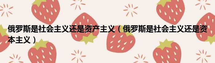 俄罗斯是社会主义还是资产主义(俄罗斯是社会主义还是资本主义)