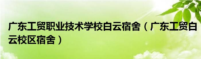广东工贸职业技术学校白云宿舍(广东工贸白云校区宿舍)