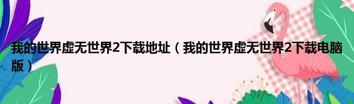我的世界虚无世界2下载地址(我的世界虚无世界2下载电脑版)