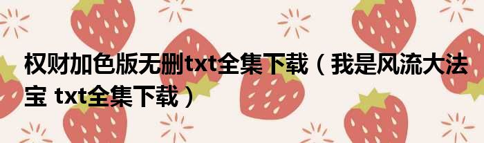 导读 大家好,小东方来为大家解答以上的问题。权财加色版无删txt全集下载,我是风流大法宝 txt全集下载这个很多人还不知道,现在让我们一起来看看
