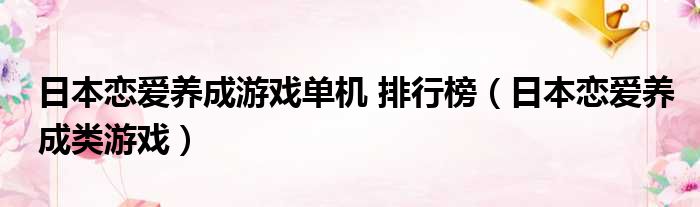日本恋爱养成游戏单机 排行榜(日本恋爱养成类游戏)