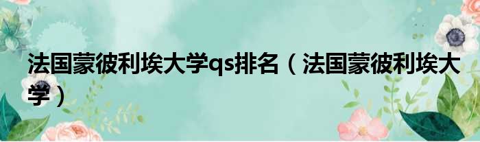 法国蒙彼利埃大学qs排名(法国蒙彼利埃大学)