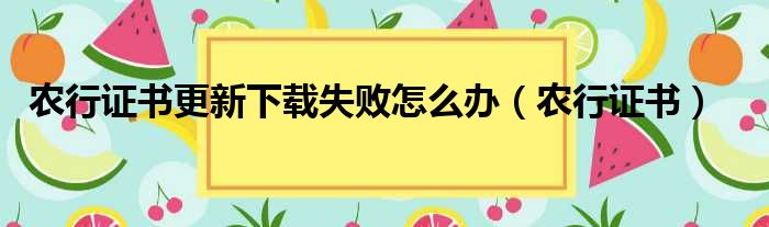 大家好,小爱来为大家解答以上问题。农行证书更新下载失败怎么办,农行证书很多人还不知道,现在让我们一起来看看吧!