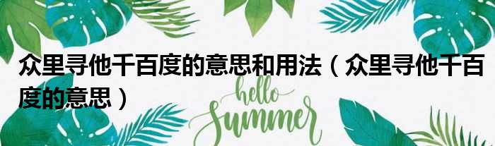 众里寻他千百度的意思和用法(众里寻他千百度的意思)