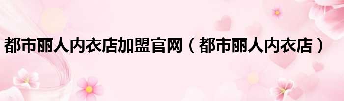 大家好,小东方来为大家解答以上的问题。都市丽人内衣店加盟官网,都市丽人内衣店这个很多人还不知道,现在让我们一起来看看吧!