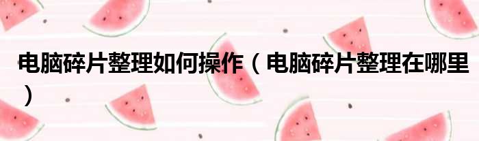 电脑碎片整理如何操作(电脑碎片整理在哪里)