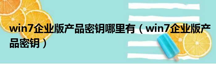win7企业版产品密钥哪里有(win7企业版产品密钥)