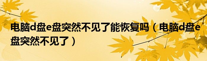 电脑d盘e盘突然不见了能恢复吗(电脑d盘e盘突然不见了)