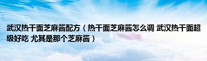 导读 大家好,小东方来为大家解答以上的问题。武汉热干面芝麻酱配方,热干面芝麻酱怎么调 武汉热干面超级好吃 尤其是那个芝麻酱这个很多人还不
