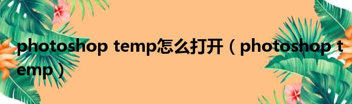 大家好,小东方来为大家解答以上的问题。photoshop temp怎么打开,photoshop temp这个很多人还不知道,现在让我们一起来看看吧!