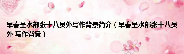 早春呈水部张十八员外写作背景简介(早春呈水部张十八员外 写作背景)