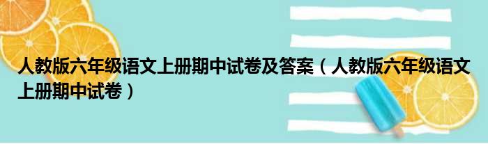 人教版六年级语文上册期中试卷及答案(人教版六年级语文上册期中试卷)