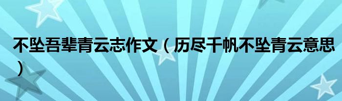 不坠吾辈青云志作文(历尽千帆不坠青云意思)