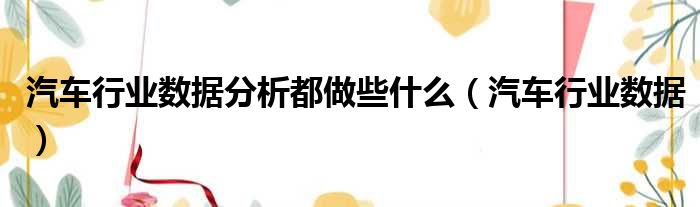大家好,小东方来为大家解答以上的问题。汽车行业数据分析都做些什么,汽车行业数据这个很多人还不知道,现在让我们一起来看看吧!