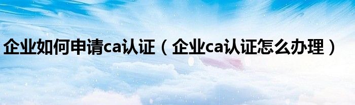 企业如何申请ca认证(企业ca认证怎么办理)