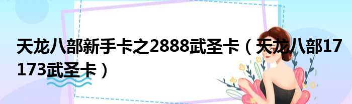天龙八部新手卡之2888武圣卡(天龙八部17173武圣卡)
