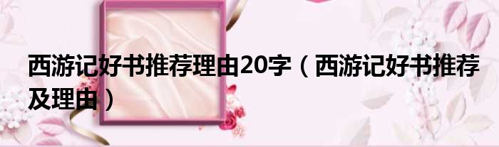 西游记好书推荐理由20字(西游记好书推荐及理由)