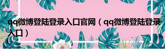 qq微博登陆登录入口官网(qq微博登陆登录入口)