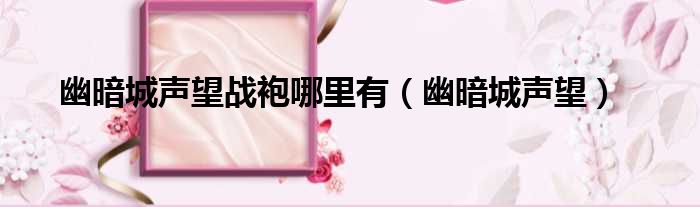 大家好,小东方来为大家解答以上的问题。幽暗城声望战袍哪里有,幽暗城声望这个很多人还不知道,现在让我们一起来看看吧!