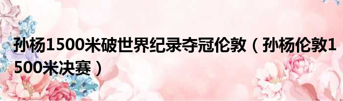 孙杨1500米破世界纪录夺冠伦敦(孙杨伦敦1500米决赛)