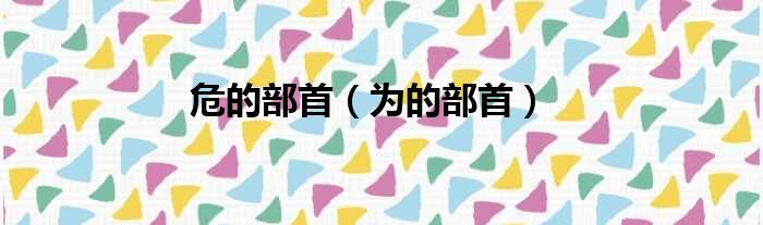 大家好,小东方来为大家解答以上的问题。危的部首,为的部首这个很多人还不知道,现在让我们一起来看看吧!