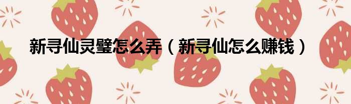 新寻仙灵璧怎么弄(新寻仙怎么赚钱)