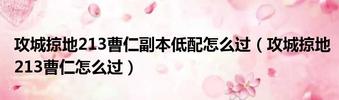 攻城掠地213曹仁副本低配怎么过(攻城掠地213曹仁怎么过)