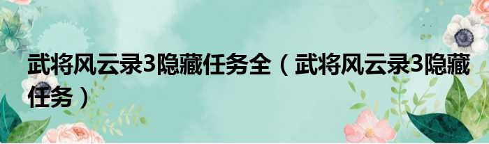 武将风云录3隐藏任务全(武将风云录3隐藏任务)