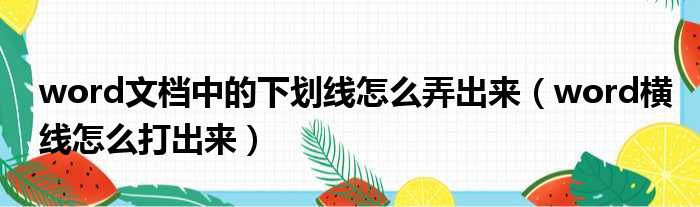 word文档中的下划线怎么弄出来(word横线怎么打出来)