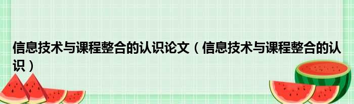 信息技术与课程整合的认识论文(信息技术与课程整合的认识)