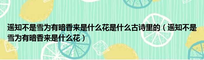 遥知不是雪为有暗香来是什么花是什么古诗里的(遥知不是雪为有暗香来是什么花)