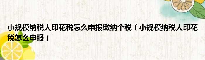小规模纳税人印花税怎么申报缴纳个税(小规模纳税人印花税怎么申报)