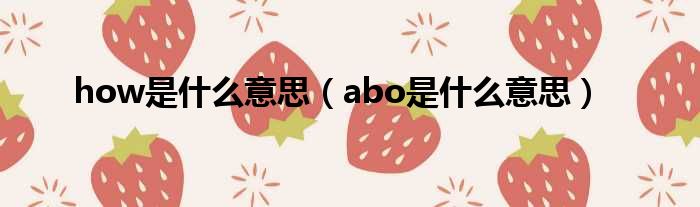导读 大家好,小东方来为大家解答以上的问题。how是什么意思,abo是什么意思这个很多人还不知道,现在让我们一起来看看吧!1、ABO是ALPHA、BETA、O