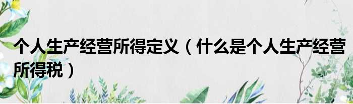 个人生产经营所得定义(什么是个人生产经营所得税)
