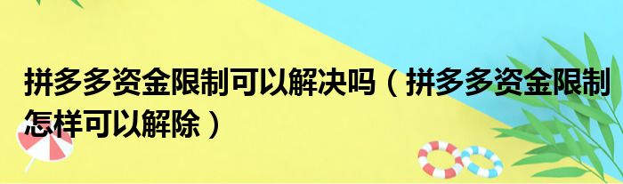 拼多多资金限制可以解决吗(拼多多资金限制怎样可以解除)