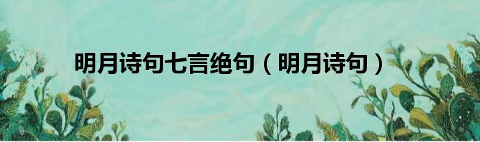 大家好,小东方来为大家解答以上的问题。明月诗句七言绝句,明月诗句这个很多人还不知道,现在让我们一起来看看吧!
