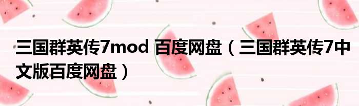 三国群英传7mod 百度网盘(三国群英传7中文版百度网盘)