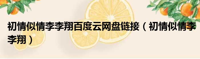 初情似情李李翔百度云网盘链接(初情似情李李翔)