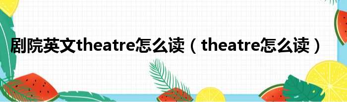 导读 大家好,小东方来为大家解答以上的问题。剧院英文theatre怎么读,theatre怎么读这个很多人还不知道,现在让我们一起来看看吧!1、theatre英[